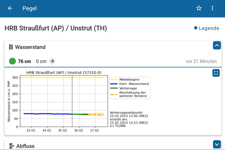 Symbolbild Meine Pegel-App © Screenshot TLUBN von meinepegel.info